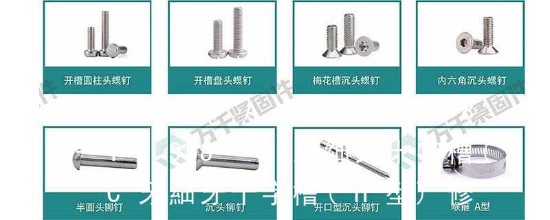 常用規格(公制螺絲、美規螺絲、英制螺絲):公制機械螺絲: Metric Ex:M3 x 6 – P P B : M3機械螺絲,6mm 長,十字,圓扁頭,鍍黑。Finish Code:外觀處理規格 Head Code:頭部外型。螺絲頭部外形。圓柱頭。半沉頭 1)開槽普通螺釘多用于較小零件的連接。它有盤頭螺釘、圓柱頭螺釘、半沉頭螺釘和沉頭螺釘。盤頭螺釘和圓柱頭螺釘的釘頭強度較高,瑁在普通的部件連接上;半沉頭螺釘的頭部呈弧形,安裝后它的頂端略外露,且美觀光滑,一般用