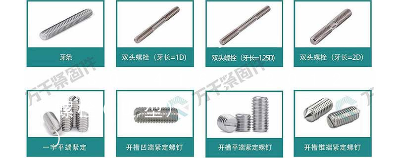 螺栓類:外六角螺栓、外六角法蘭面螺栓、內六角圓柱頭螺栓、吊環螺栓、膨脹螺栓、沉頭內六角螺栓、盤頭內六角螺絲、馬車螺栓、雙頭螺栓、蝶型螺絲、活節螺栓、地腳螺 栓、U型螺栓、四角螺栓等 螺帽類:鉚螺母、吊環螺母、 SHJ404-88管法蘭用緊固件(中石化公司)HGJ75-91化工機械部標準(螺栓、螺柱、螺母)HGJ524-91/A1-1化學工業部標準(公制管用,U型螺栓)HGJ524-91/A1-2化學工業部標準(英制管用,U型螺栓)HGJ524-91/A2-1化學工業部